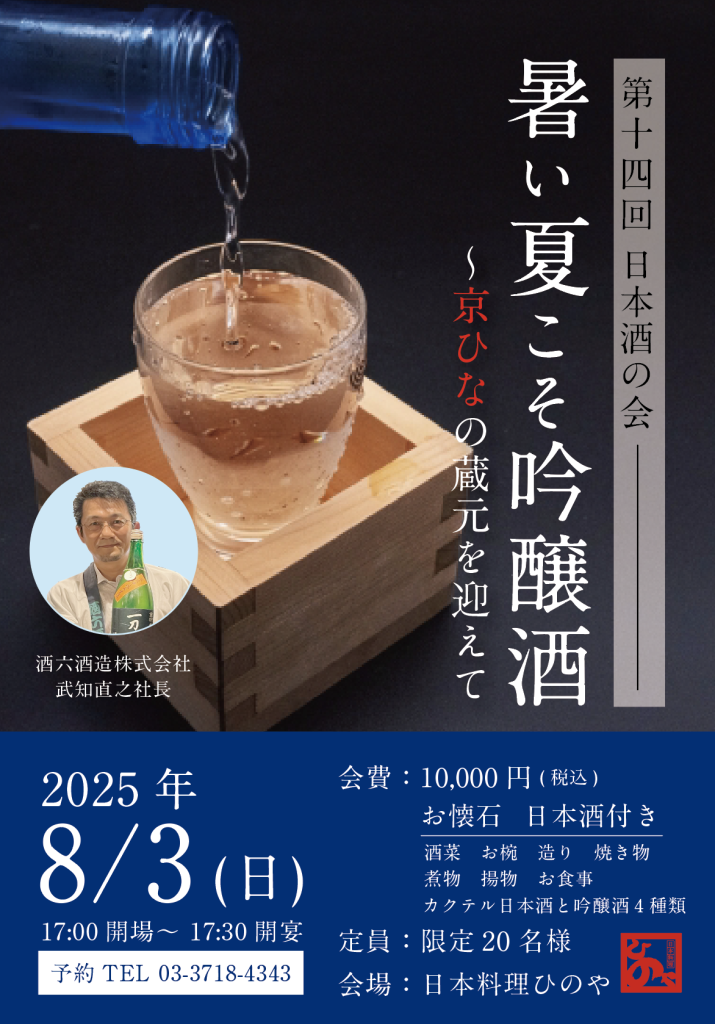 東京都)第十四回 日本酒の会【暑い夏こそ吟醸酒~京ひなの蔵元を迎えて~】(8/3開催)